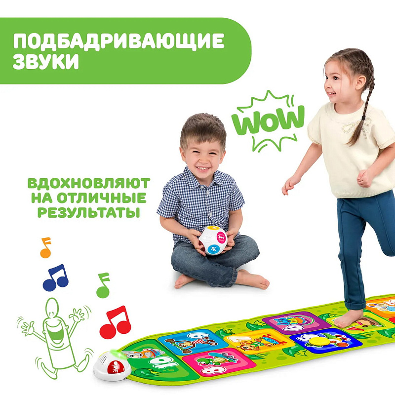 Когда ребенок прыгает на квадрат, активируются звуки и подсветка, указывающие, куда необходимо прыгнуть дальше.