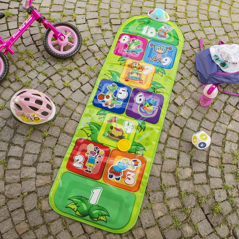 Когда ребенок прыгает на квадрат, активируются звуки и подсветка, указывающие, куда необходимо прыгнуть дальше.