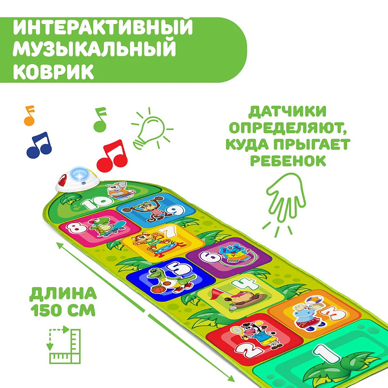 Музыкальный коврик для детей от 2 до 5 лет со световым и звуковым сопровождением и играми разной сложности. Интерактивный коврик с изображением забавных животных, можно играть одному или компанией, поможет сформировать позитивное отношение к спорту и развлечет детей.