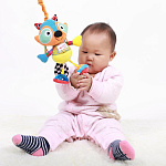 Игрушка имеет шелестящие элементы (хвостик), издает звук при нажатии на животик, есть зеркальце на ножке, есть погремушка на ножке, где расположено зеркальце.