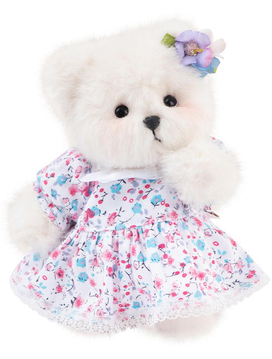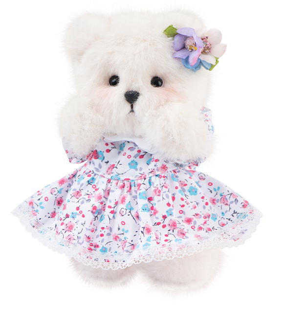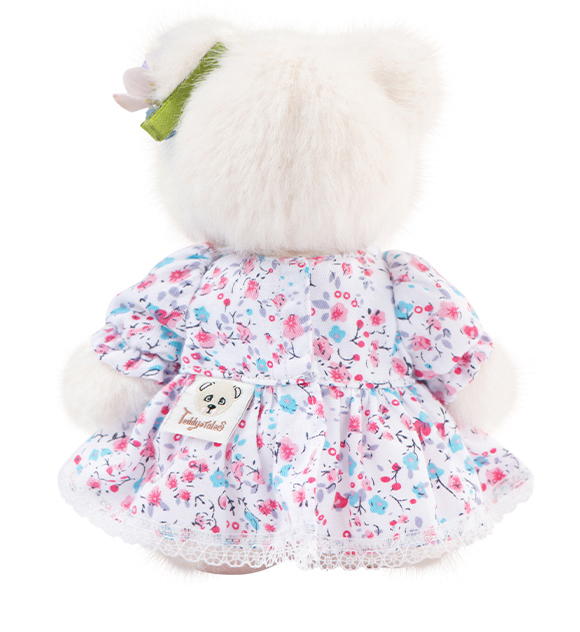 Перед вами – воплощение весны и нежности, словно сошедшее со страниц детской книжки. Её прелестное платьице с цветочным принтом и изящным кружевом излучает безмятежное настроение. Аккуратный воротничок и пышная юбочка придают образу трогательную элегантность, а нежный цветок в волосах завершает её ангельский вид. Этот плюшевый друг от TeddyTales станет сокровищем для любого, кто ценит красоту и душевное тепло. Она идеально подходит для объятий, украшения комнаты и создания атмосферы любви и заботы.