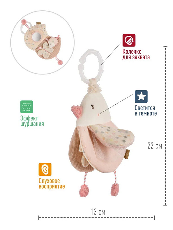 Мягкая игрушка-книжка с подвесом Fehn Птичка
