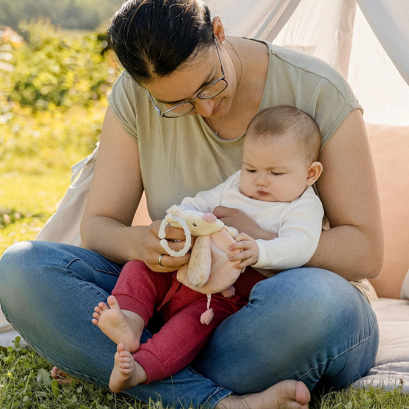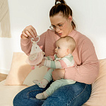 Такой набор развивает у малыша сенсорное и слуховое восприятие, моторику и стимулирует воображение. Удобное колечко тренирует хватательные навыки. А светящаяся в темноте вышивка помогает побороть страх темноты.