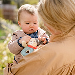 Игрушка очень уютная и приятная на ощупь. За колечко погремушку легко и удобно держать маленькой ладошкой. Чтобы малышу было нескучно в коляске или автокресле, игрушку можно взять с собой в дорогу или на прогулку. Идеальный подарок на рождение ребенка или любой другой праздник.