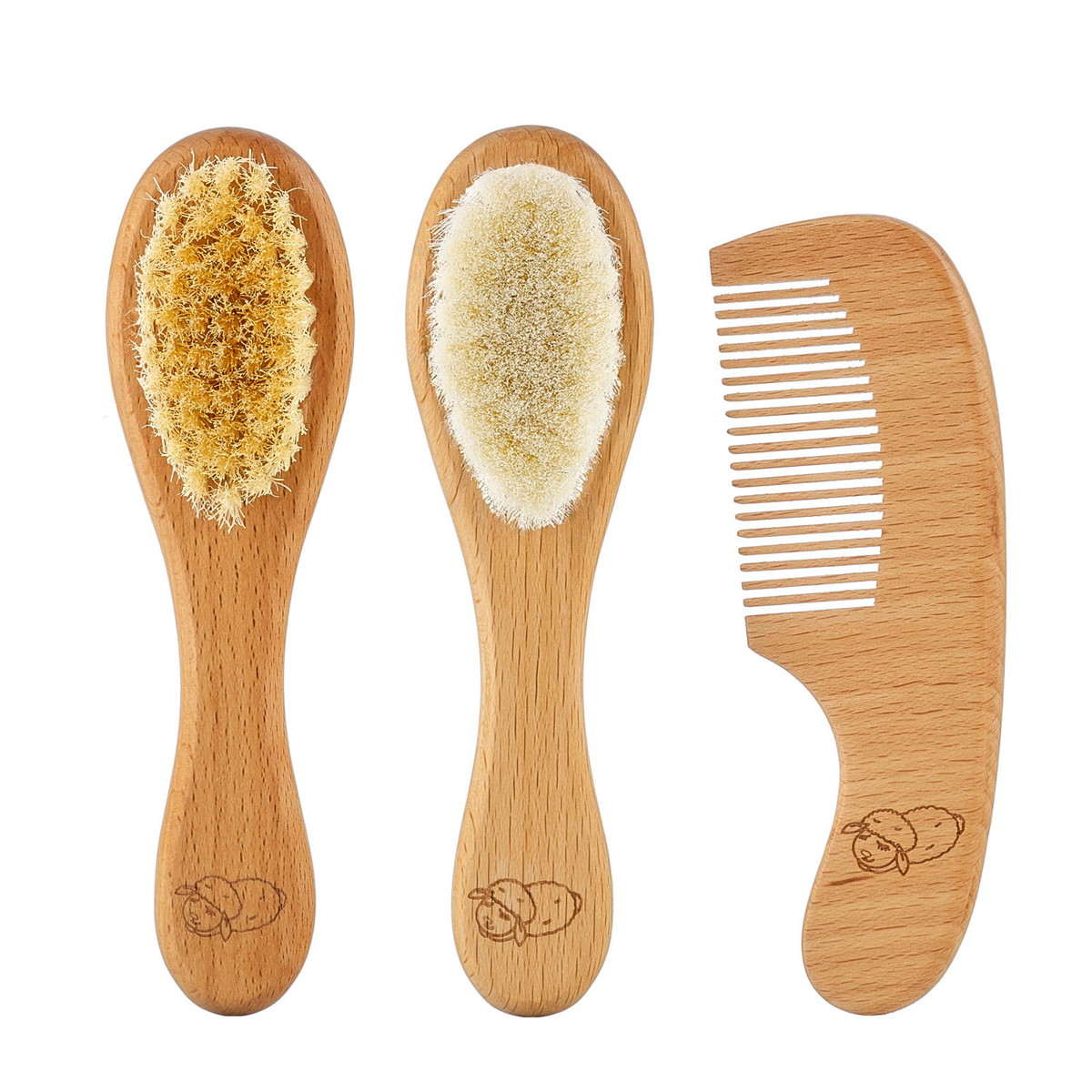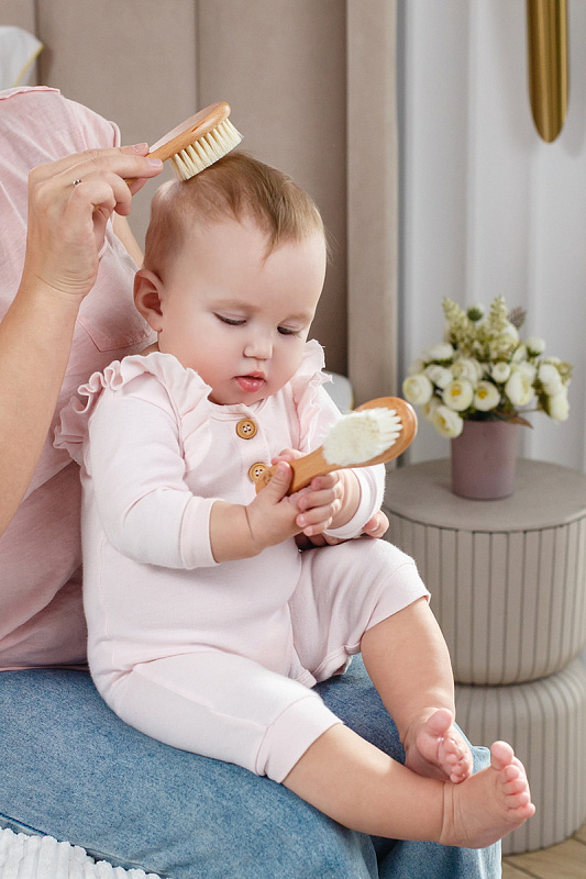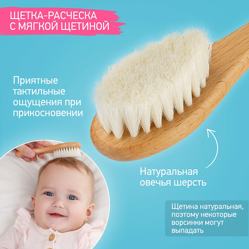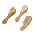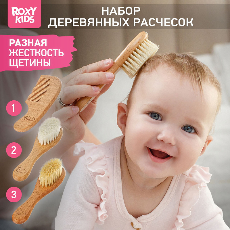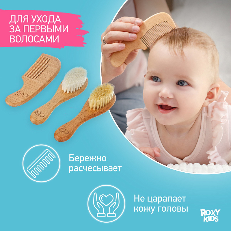 Деревянные расчески от ROXY-KIDS предназначены для бережного ухода за волосами и кожей головы малыша с первых дней жизни. Расческа-щетка с мягким ворсом из натуральной овечьей шерсти предназначена для бережного ухода за волосами и кожей головы малыша с первых дней жизни. Мягкая пушистая щетка имеет удобную эргономичную ручку, улучшает кровообращение кожи головы, не царапая её. Щетка-расческа с жесткой щетиной подходит для массажа кожи головы и вычесывания "молочных" корочек. Нежный массаж расслабляет и успокаивает перед сном, а стимуляция волосяных луковиц ускоряет рост первых волос малыша. C помощью гребешка с частыми, но не острыми зубчиками удобно расчесывать запутавшиеся волосы. Расчески изготовлены из натурального бука. Этот экологически чистый материал обладает высокой прочностью и безопасен для малыша, поэтому расчески можно грызть в период прорезывания зубов. Подарите своему малышу заботу и комфорт с качественными аксессуарами от ROXY-KIDS!