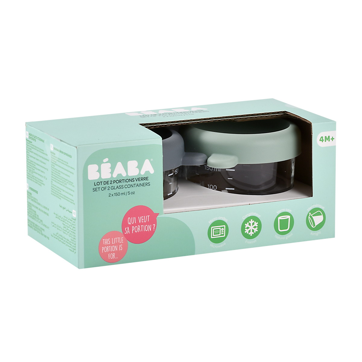 Набор Beaba Portion из двух стеклянных контейнеров с крышкой 150 мл.