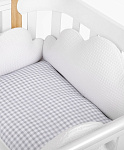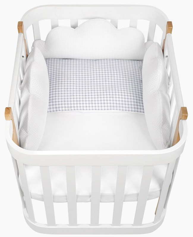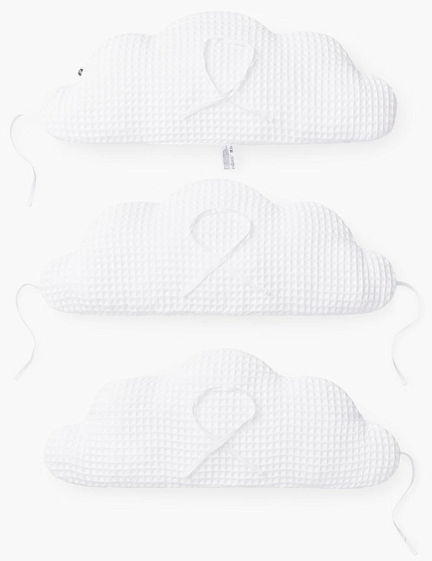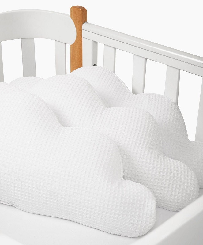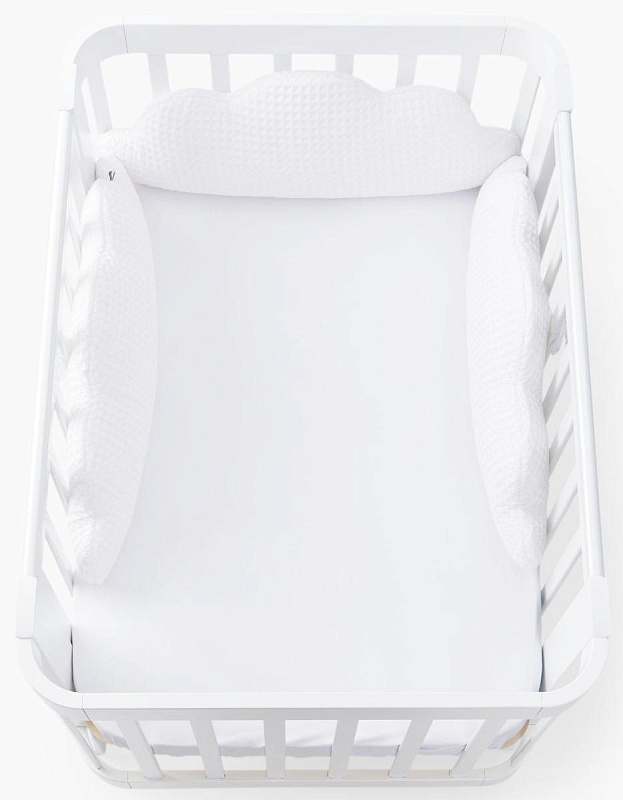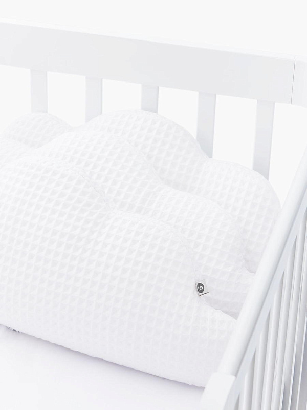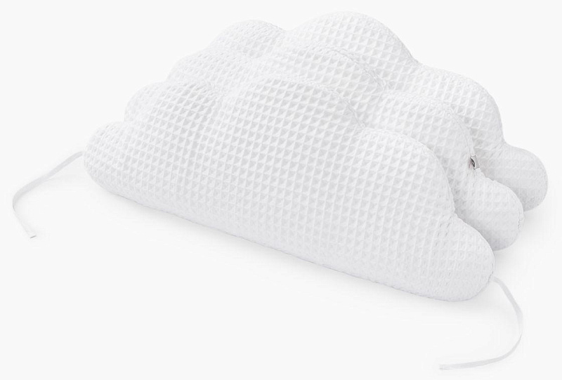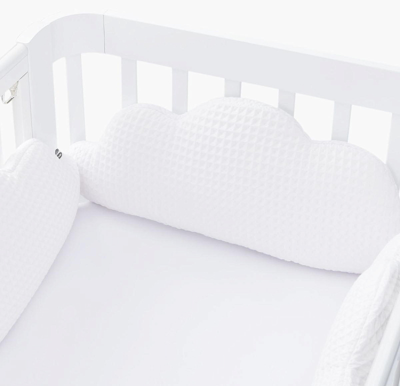 Благодаря такому аксессуару кроватка станет безопасным и уютным местом для игр и сна вашего малыша.Выполненный в виде легких воздушных облаков бортик заинтересует кроху как игровой элемент и добавит уюта, а его супермягкая форма защитит от травм, ушибов и не даст провалиться или застрять в перегородках.Безопасность малыша крайне важна не только во время дневных игр, но также и во время его сна. В этом вам поможет мягкий бортик, который крепится по периметру кроватки, обеспечивая малыша защитой и комфортом.
