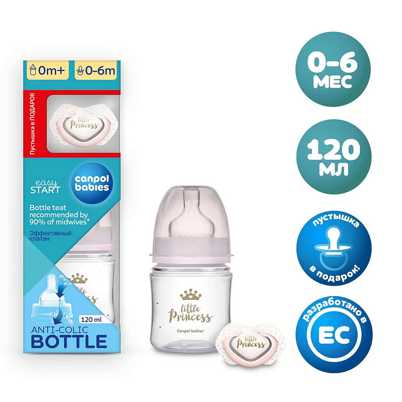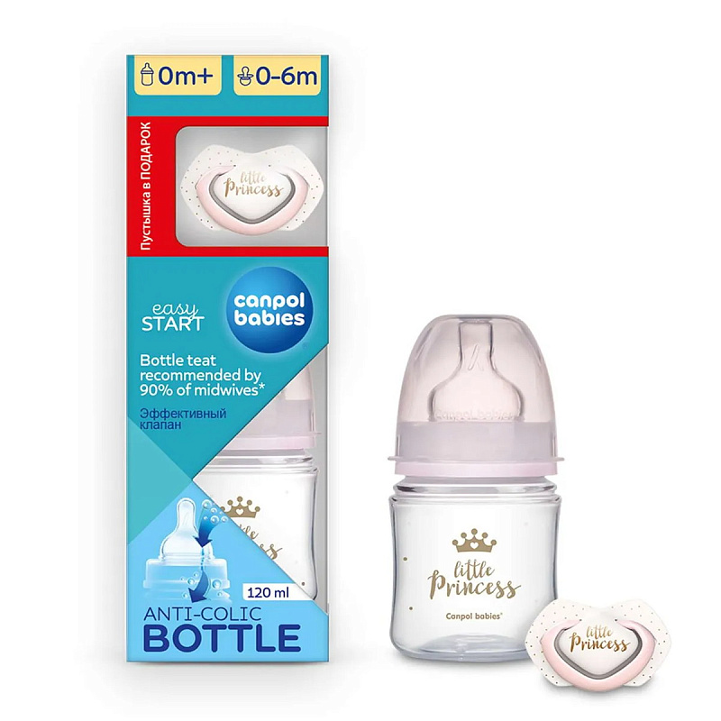 Бутылочка для кормления Canpol babies + силиконовой пустышкой симметричной формы коллекции Royal baby = идеальный набор с первых дней жизни малыша!
