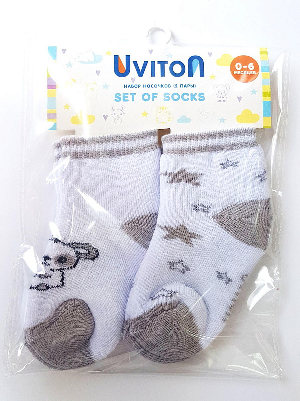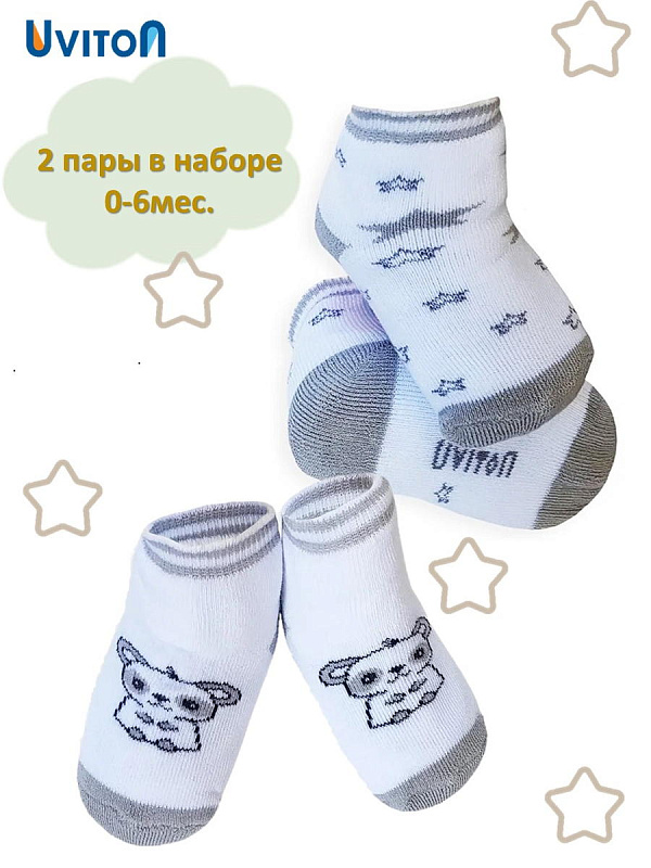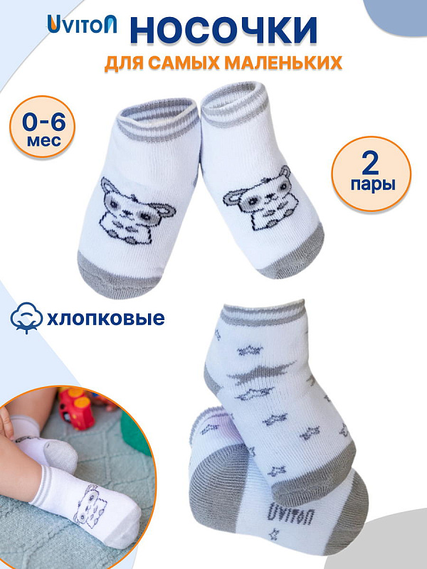 Набор детских носочков Uviton Stars 0-6 мес махровые 2 штуки 0186 ЧЗ