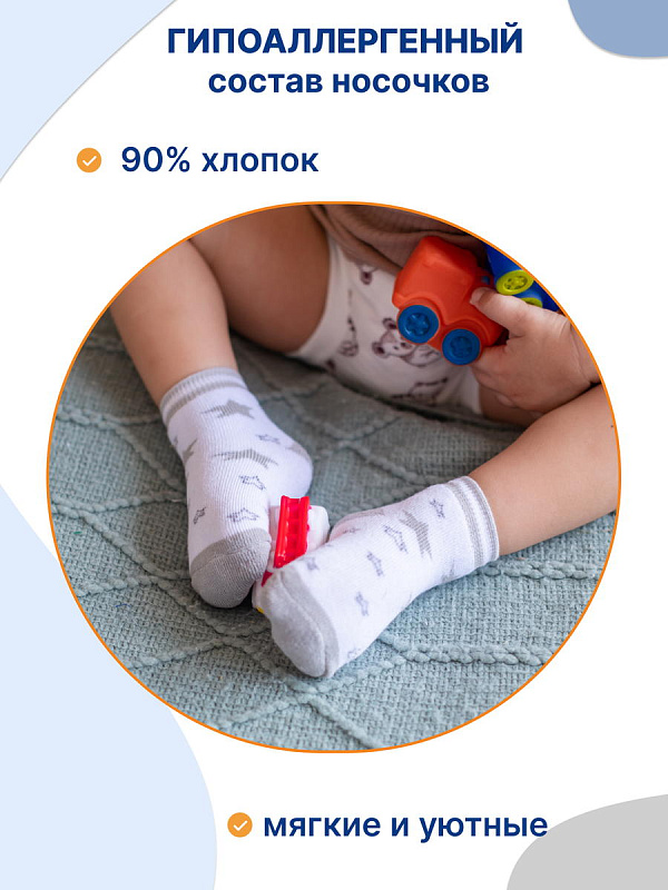 Мягкие и комфортные, махровые носочки для малышей изготовлены из натурального хлопка.