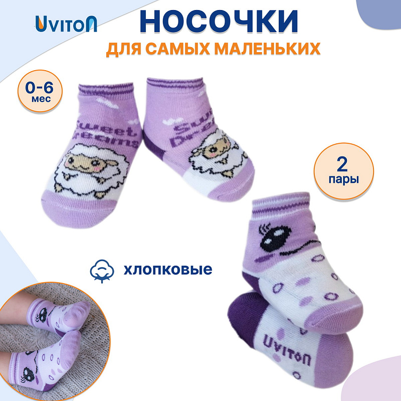 Комплект носков для новорожденного состоит из 2 пар. Носочки для новорожденных Uviton. Мягкие и комфортные, изготовлены из натурального хлопка. Нежный цвет изделий в сочетании с красочным рисунком выглядит очень привлекательно.