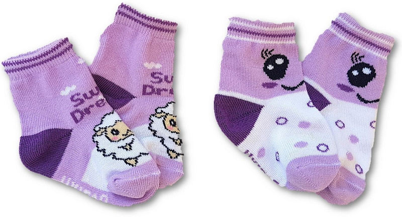 Комплект состоит из 2 пар, которые отличаются по дизайну с выдержанной цветовой гаммой: с веселыми мордашками наверняка, понравятся малышу и вызовут умиление у взрослых.