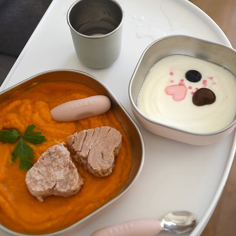 Набор детской посуды из нержавеющей стали BEABA станет отличным помощником в кормлении малыша. Каждый предмет из набора разработан из безопасных материалов с учетом всех потребностей малыша, который только начинает знакомиться с прикормом или уже осваивает навыки самостоятельного приема пищи.