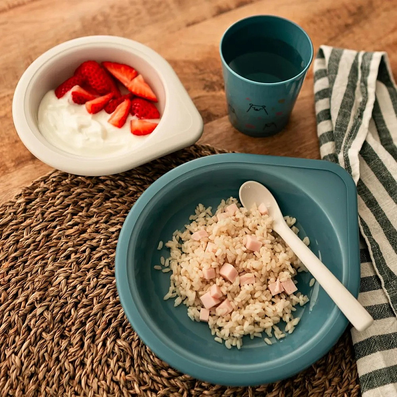- В комплекте: две тарелочки, обучающая чашка и силиконовая ложка с длинной ручкой