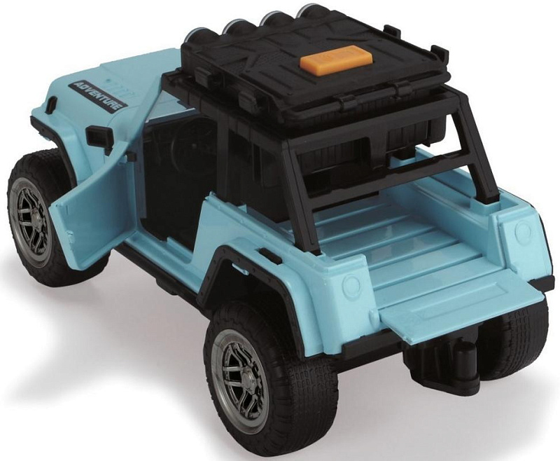 - джип с открывающимися дверцами, вращающимися колёсами и багажником на крыше