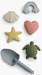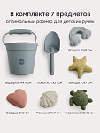 Комплектация Формочки - 5 шт., лопата - 1 шт., ведро - 1 шт., мешочек - 1 шт.