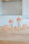 Бутылочка оснащена уникальным антиколиковым силиконовым мешочком, который сжимается в процессе кормления, предотвращая попадание лишнего воздуха и создавая физилогичное давление при сосании, схожее с материнской грудью. Этот механизм позволяет снизить возникновение коликов, а также риск дискомфорта и неприятных ощущений после еды.