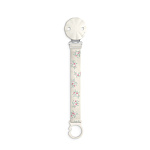 - Клипса с лентой для пустышки — незаменимый аксессуар на прогулках и во время игр: с помощью прищепки клипса крепится к одежде малыша, сумке или коляске, а значит пустышка не упадет на землю и не потеряется.