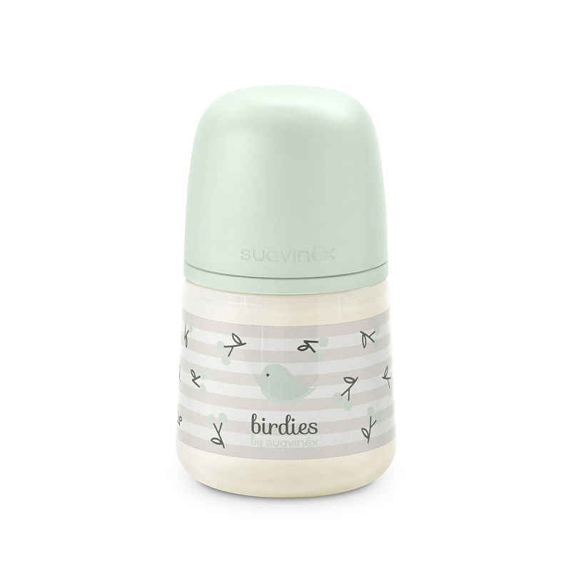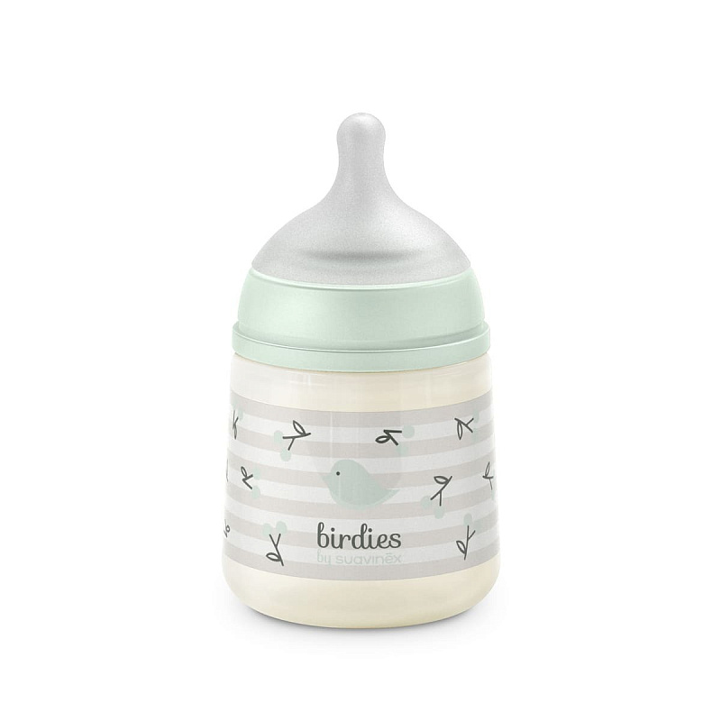 - Бутылочка для кормления объемом 150 мл (2шт) с физиологической соской из силикона SX Pro с медленным потоком (S), с антиколиковым клапаном, рекомендована с рождения. Подходит для грудного молока и смеси с первых дней жизни, а также для воды, когда ребенок подрастет.
