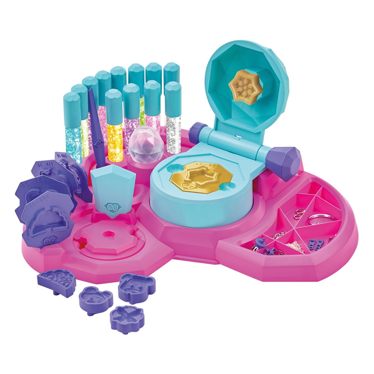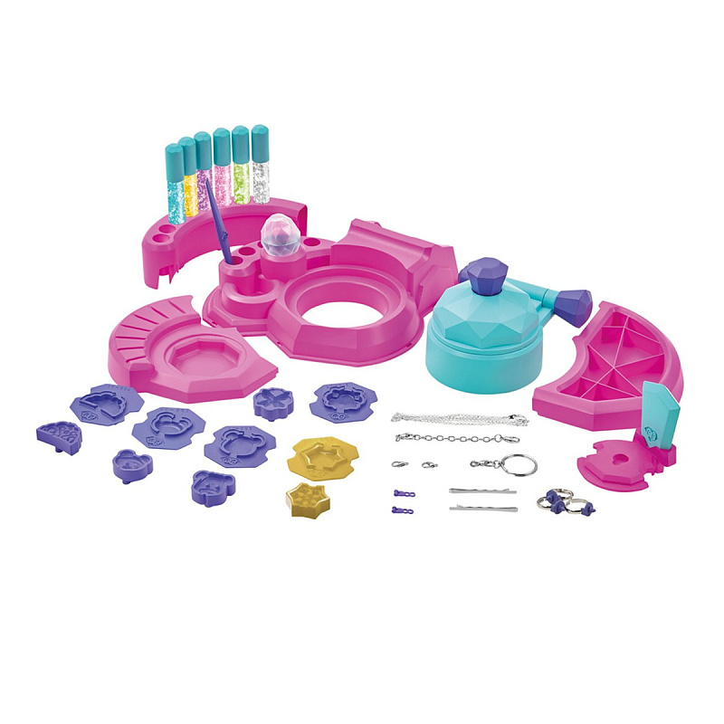 - Дайте украшению высохнуть. В наборе: подставка под формочки, пресс-форма, кристаллы 6 цветов, 1 упаковка глиттера, 4 формочки, золотая формочка, основа для колечка, основа для шнурков, колба, ложка, подарочная упаковка 2 шт., 14 стикеров, инструкция, аксессуары (3 кольца, 2 заколки, 1 брелок, 1 бирка для сумки, 1 шарм для браслета, 1 подвеска)