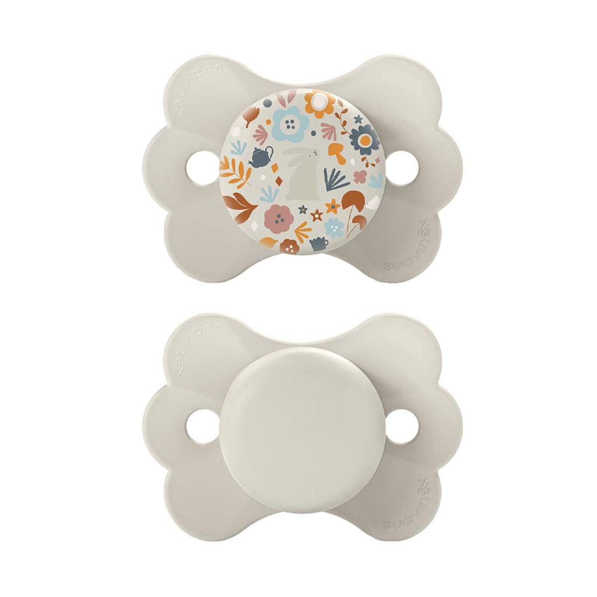 Пустышки выполнены из ультрамягкого силикона с пескоструйной обработкой и имеют плоскую симметричную соску SX Pro, которая анатомически правильно располагается во рту ребенка, не препятствуя естественному развитию ротовой полости и прикуса.