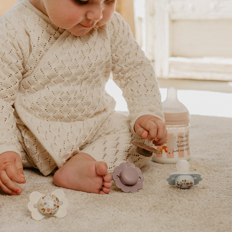 Коллекция Suavinex Wonder — это сочетание утонченного дизайна и функциональности. Сдержанная цветовая палитра в сочетании с цветочным принтом превращают обычные детские пустышки и клипсы в элегантный аксессуар, дополняющий образ мамы и малыша.