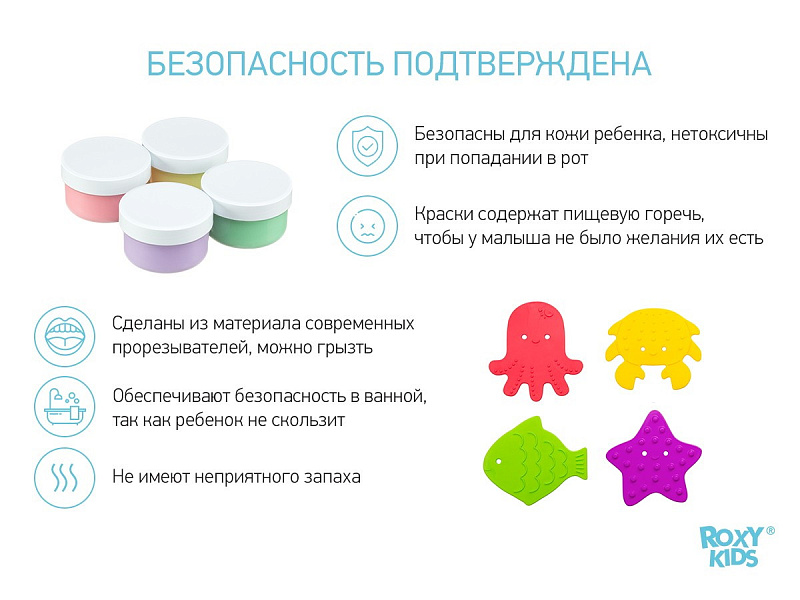 Набор игрушек для ванны мини-коврики Roxy-Kids Sea Animals с пальчиковыми красками RBM-010-FC яркиеНет оценокХарактеристики