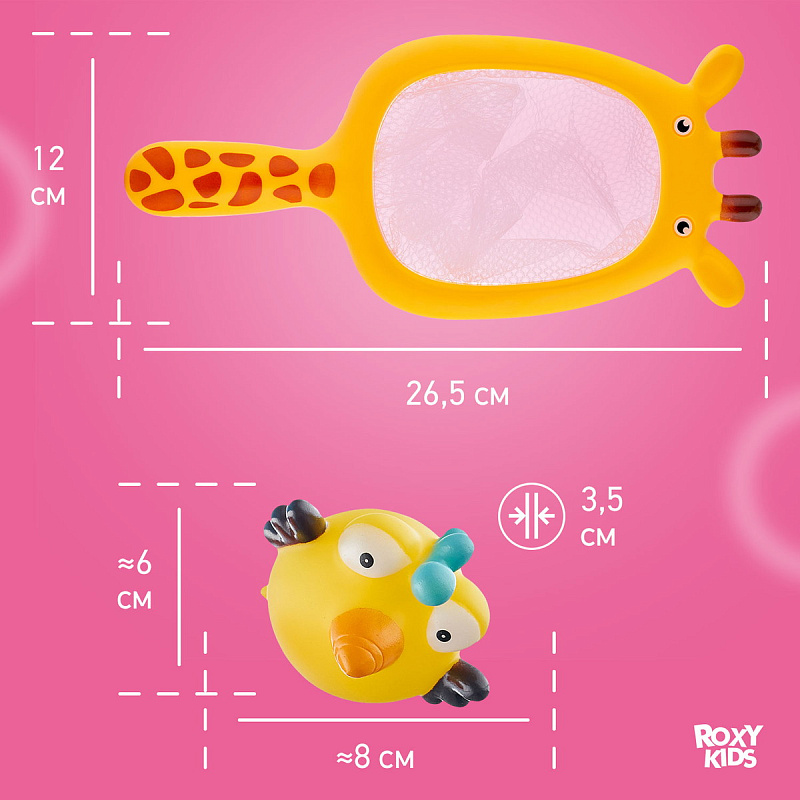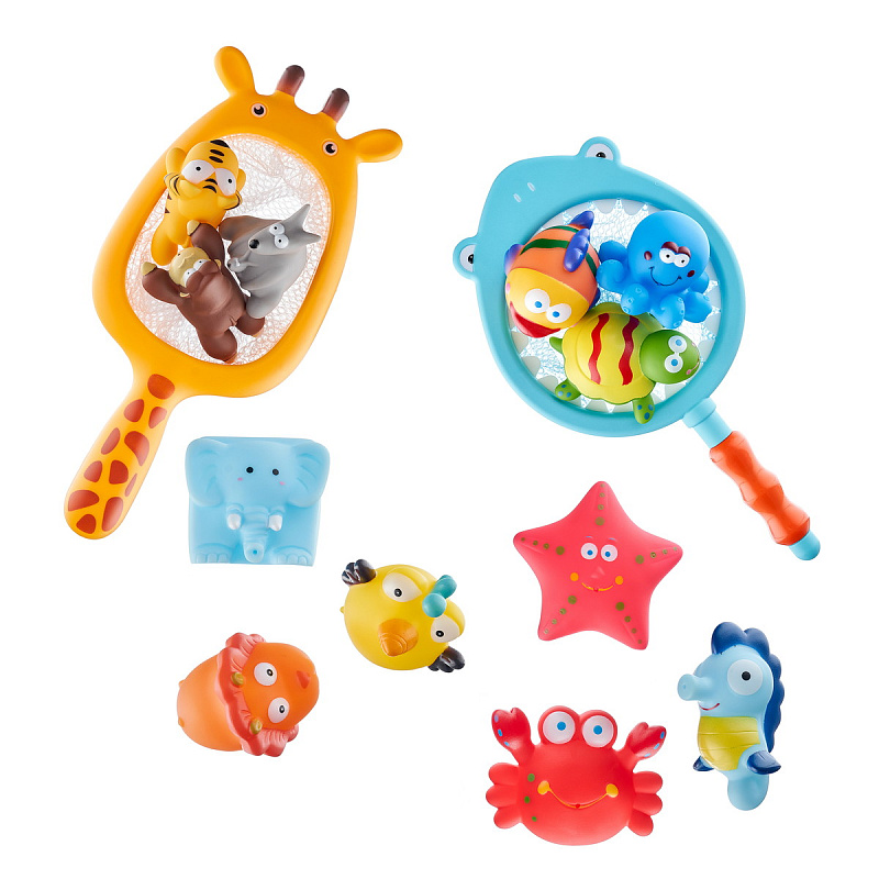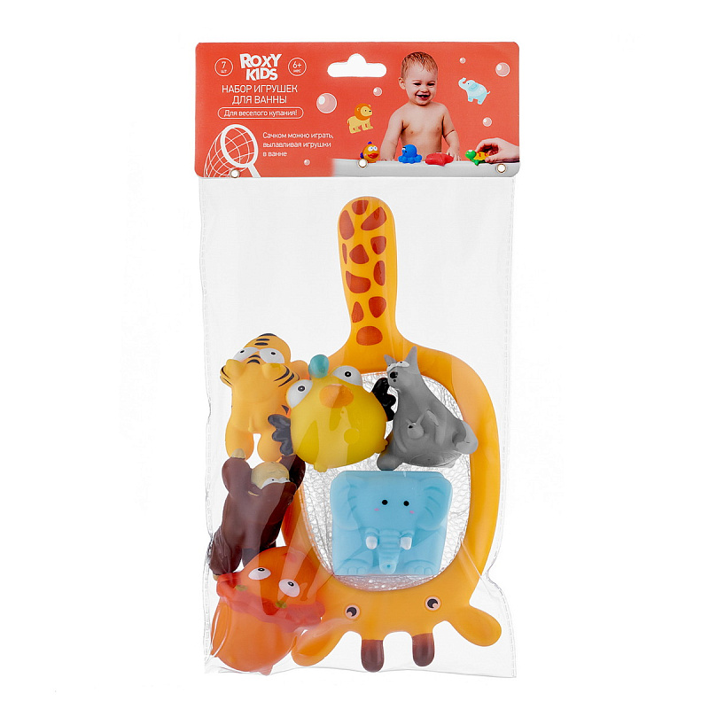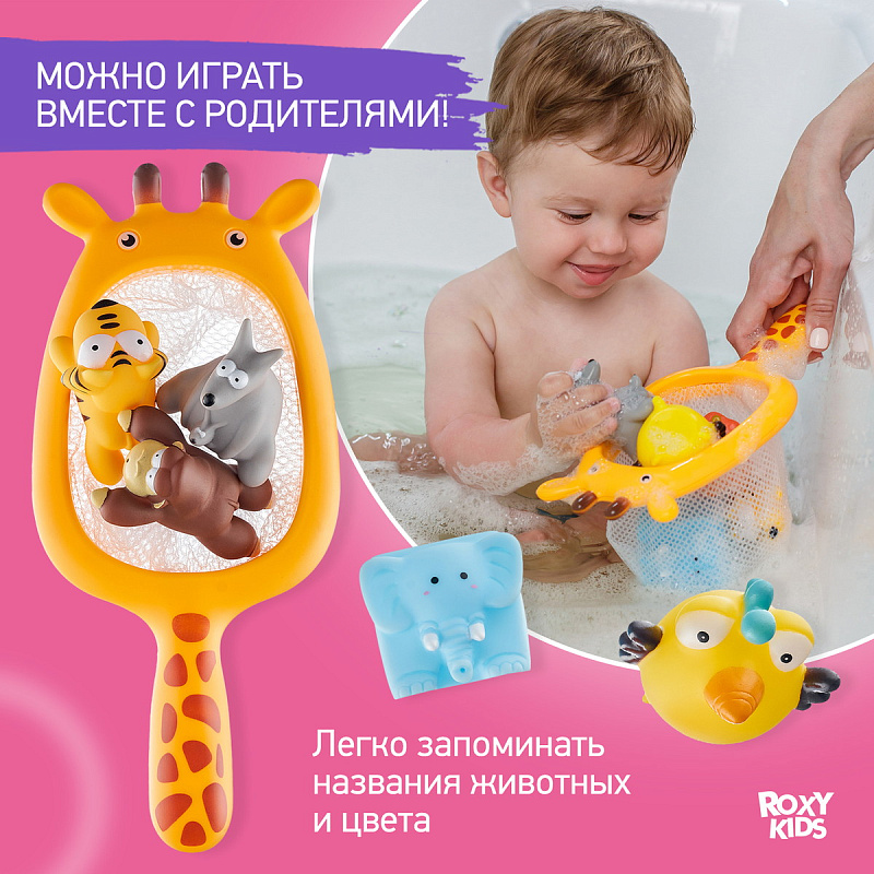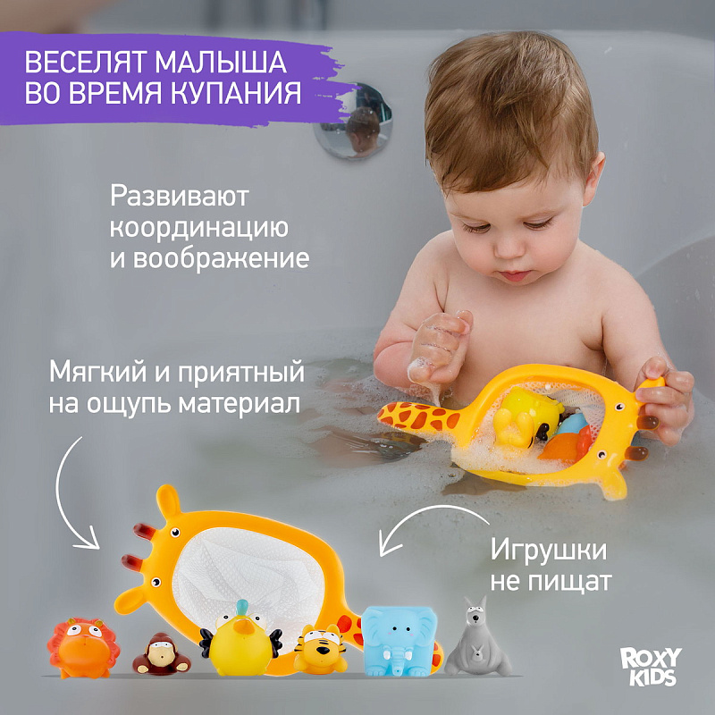 Набор игрушек Roxy-Kids Сафари для ванной с сачком в комплекте 7 шт.