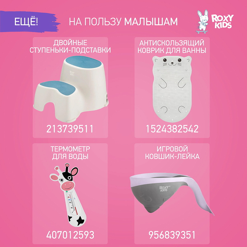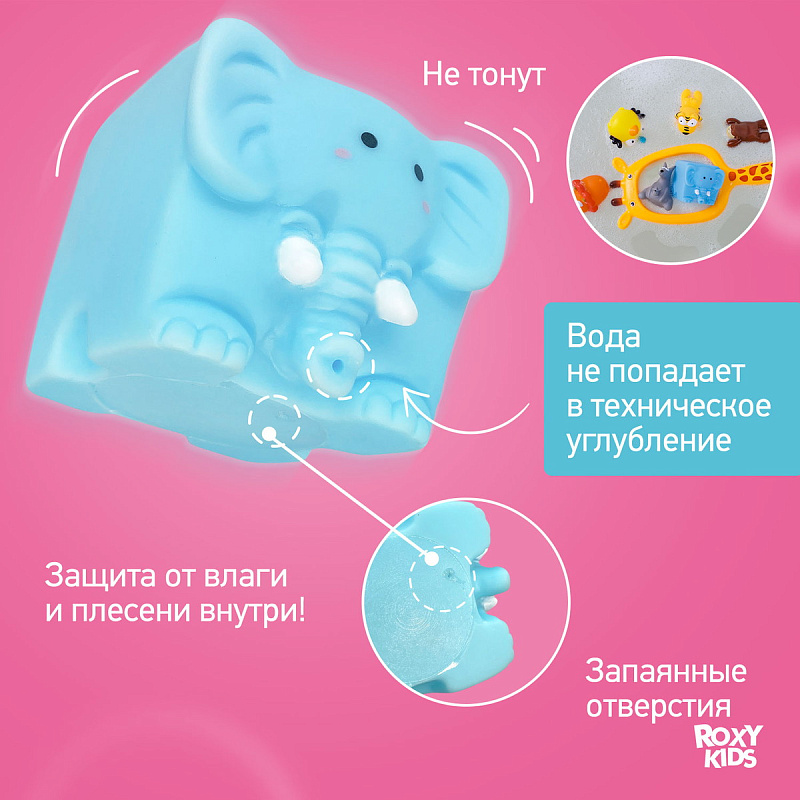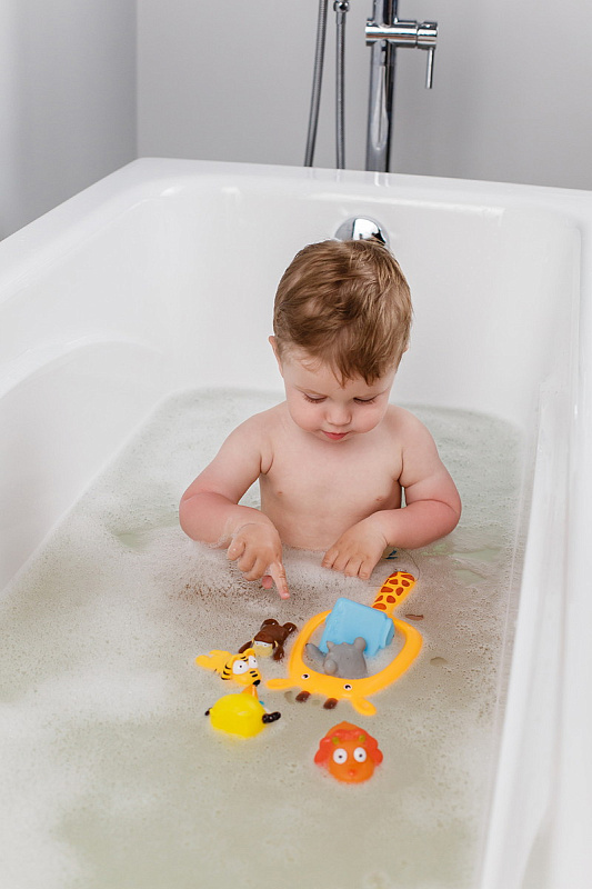 Яркие плавающие детские игрушки для ванной развеселят вашего малыша во время купания. Они имеют оптимальный размер, чтобы ребенок мог легко взять в руку любую игрушку. Игрушки не тонут, поэтому их можно пустить их в плавание. Игрушки изготовлены из нетоксичных материалов и абсолютно безопасны для детей. Вылавливая игрушки сачком, ребенок будет развивать координацию, внимание и моторику рук. Игрушки удобны для захвата и имеют приятную на ощупь поверхность. Благодаря спаянной форме изделия не тонут и хорошо держатся на воде. Развивают воображение и цветовое восприятие. Учат различать формы. Позволяют наблюдать за свойствами предметов в воде. Благодаря небольшому размеру не займут много места в ванной. Яркие цвета не позволят им затеряться под слоем пены. Быстро сохнут и просты в уходе. Одного набора игрушек с лихвой хватит, чтобы занять малыша на все время купания. А чтобы быстро собрать и промыть их после, используйте органайзер для игрушек и мыльных принадлежностей. Не имеют отверстия внутри, что предотвращает появление плесени и неприятных запахов. В ассортименте ROXY-KIDS есть несколько наборов игрушек.