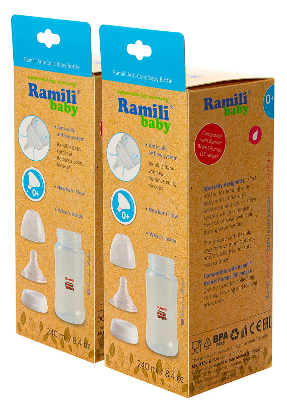 - Бутылочка подходит для использования с молокоотсосами Ramili SE-серии.