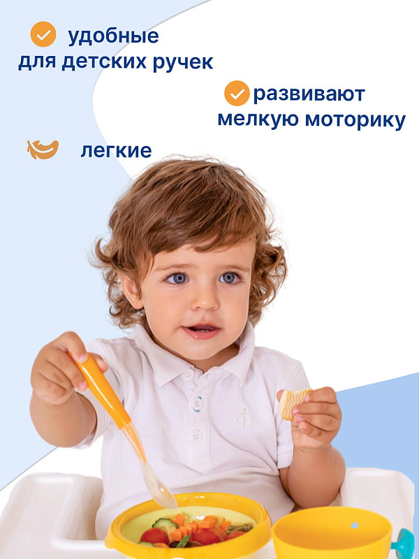 ложечка пластиковая (2шт.) с антискользящим покрытием - для каш, пюре, водички, соков, бульонов. Имеется выемка внизу ложечки для удобства ее прикладывания к тарелочке и ровного нахождения на столе.