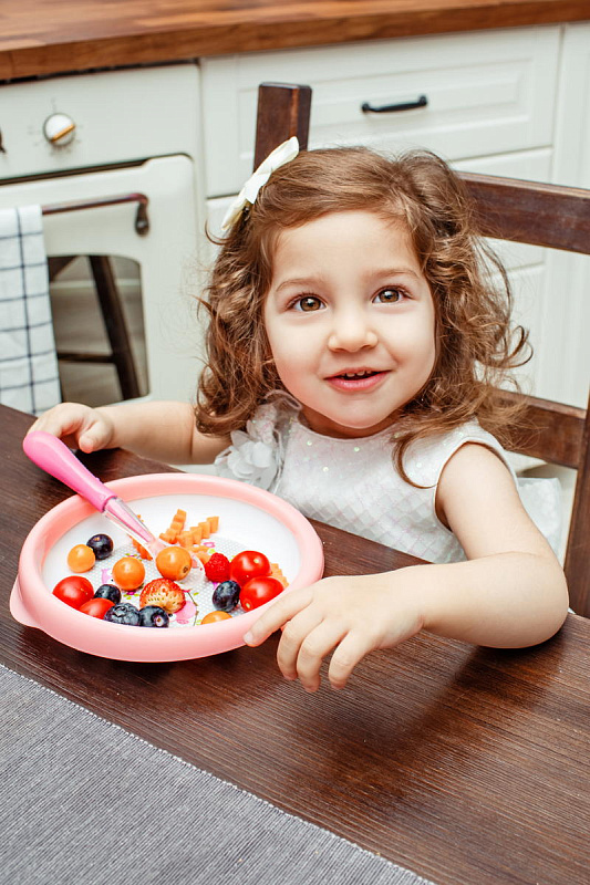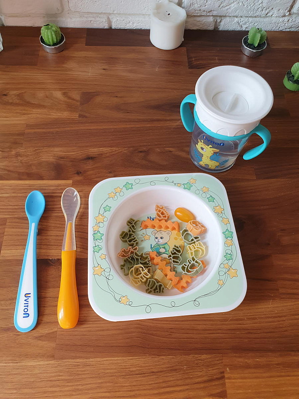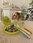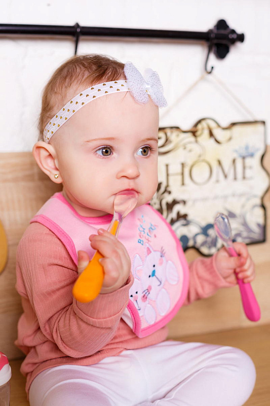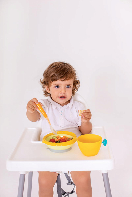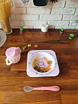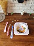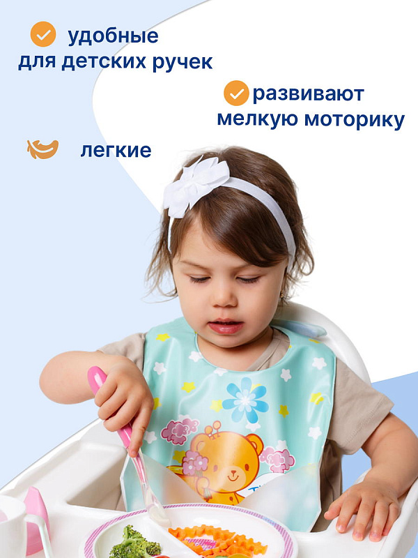 ложечка пластиковая (2шт.) с антискользящим покрытием - для каш, пюре, водички, соков, бульонов. Имеется выемка внизу ложечки для удобства ее прикладывания к тарелочке и ровного нахождения на столе.