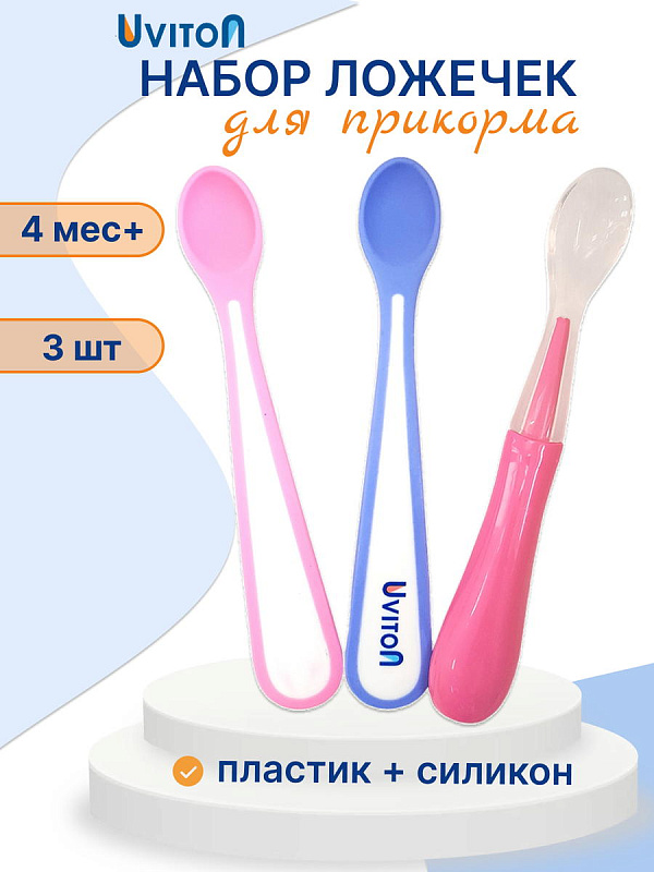 Легкое и простое решение для введения первого прикорма малышу - набор ложечек от Uviton. В наборе 3 ложечки: