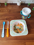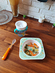 Подходит для1 силиконовая ложечка для пюре, 2 пластиковых ложечки для каш, пюре, водички, соков, бульонов
