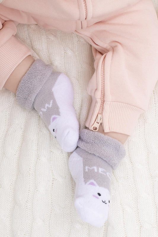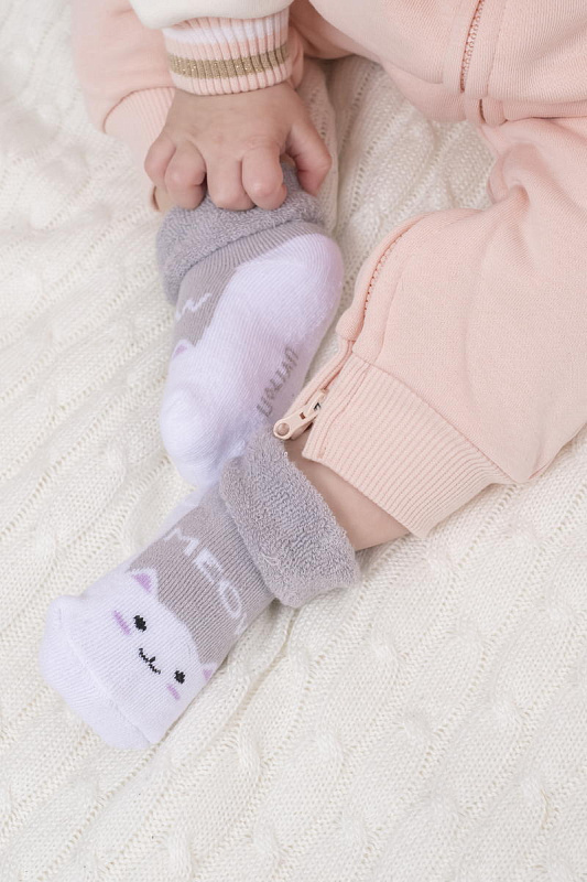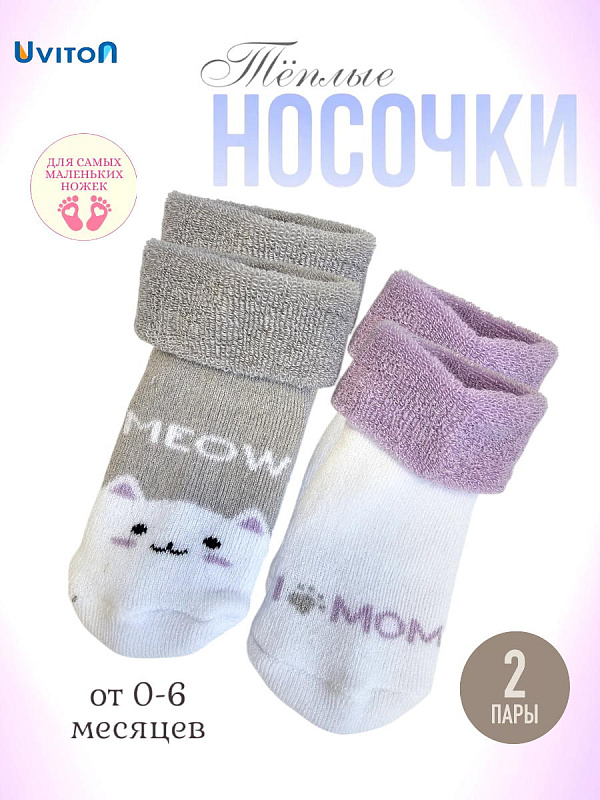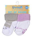 Набор носочков Uviton 2 пары махра Meow 0175 ЧЗ серый/сиреневый 56