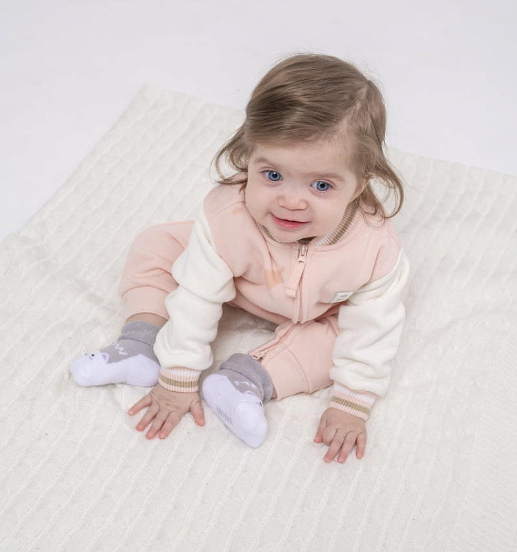 Нежный цвет изделий в сочетании с красочным рисунком выглядит очень привлекательно. Комплект состоит из 2 пар, которые отличаются по дизайну с выдержанной цветовой гаммой. На носочки нанесены надписи, которые, наверняка, понравятся малышу и вызовут умиление у взрослых. Текстура очень мягкая, нежная, что гарантирует вашему малышу комфорт при носке. Резинка совершенно не стягивает ножку, но при этом отлично фиксирует.