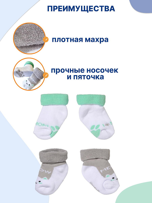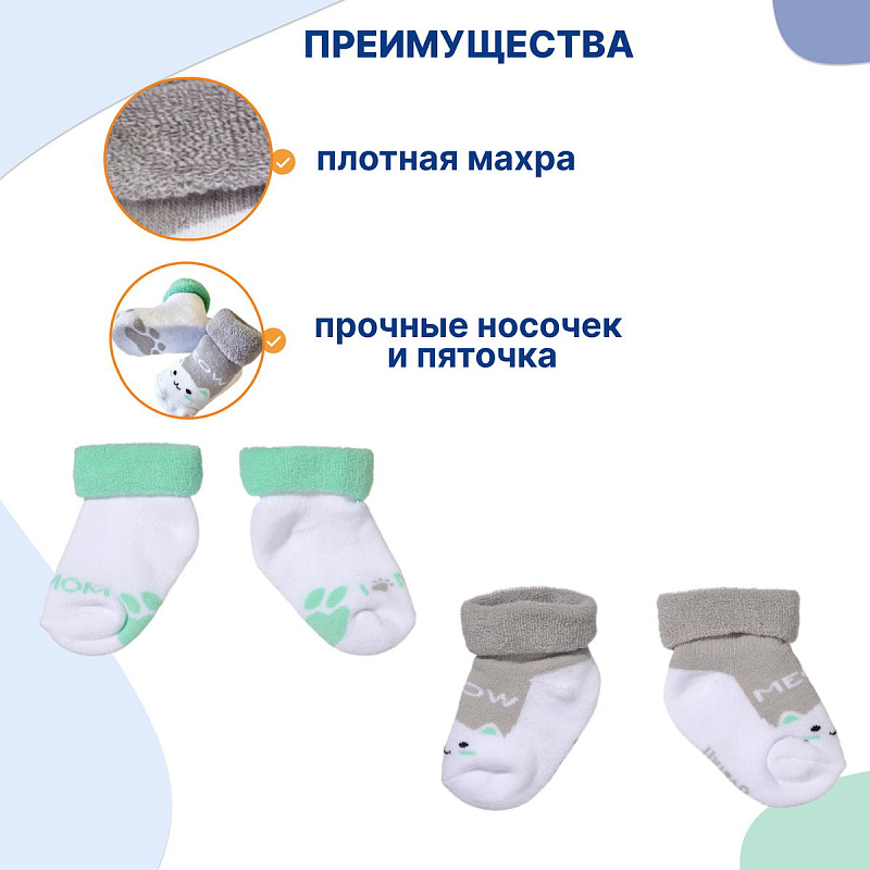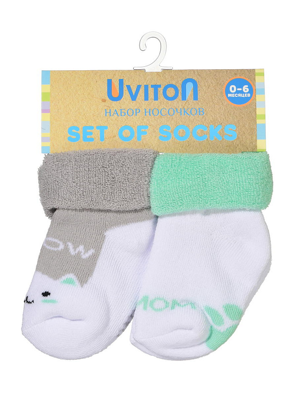 Набор носочков Uviton 2 пары махра Meow 0175 ЧЗ серый/мятный 56