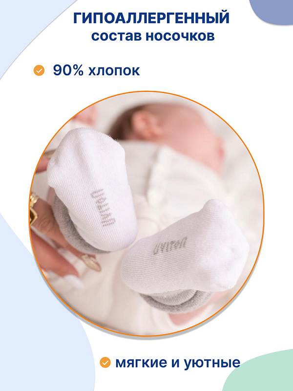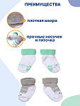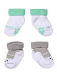 Нежный цвет изделий в сочетании с красочным рисунком выглядит очень привлекательно. Комплект состоит из 2 пар, которые отличаются по дизайну с выдержанной цветовой гаммой. На носочки нанесены надписи, которые, наверняка, понравятся малышу и вызовут умиление у взрослых. Текстура очень мягкая, нежная, что гарантирует вашему малышу комфорт при носке. Резинка совершенно не стягивает ножку, но при этом отлично фиксирует.