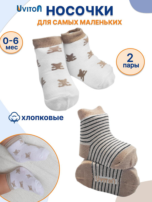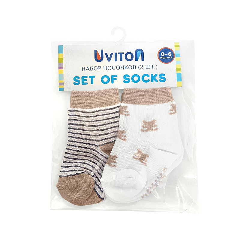 Набор носочков Uviton хлопок 2 пары 0175 ЧЗ Мишка бежевый 56