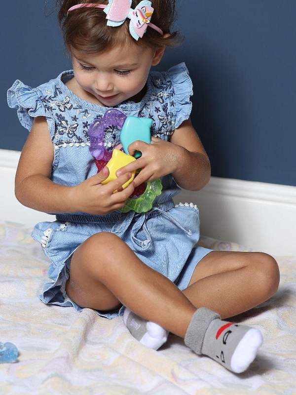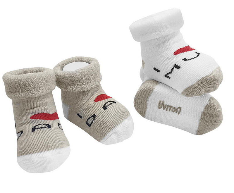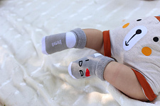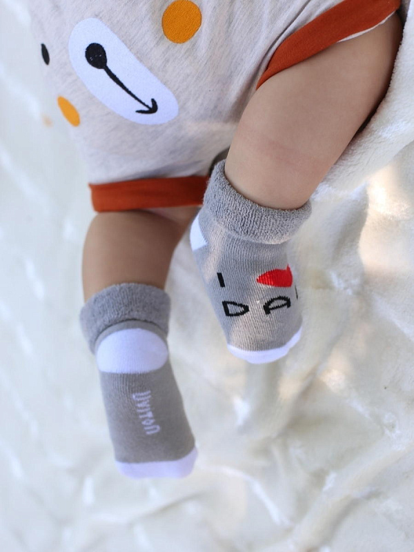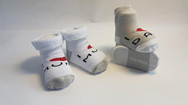 Нежный цвет изделий в сочетании с красочным рисунком выглядит очень привлекательно. Комплект состоит из 2 пар, которые отличаются по дизайну с выдержанной цветовой гаммой. На носочки нанесены надписи, которые, наверняка, понравятся малышу и вызовут умиление у взрослых. Текстура очень мягкая, нежная, что гарантирует вашему малышу комфорт при носке. Резинка совершенно не стягивает ножку, но при этом отлично фиксирует.