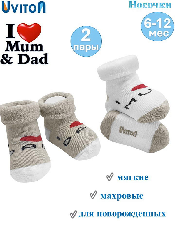 Набор носочков Uviton махра 2 пары 0173 ЧЗ Я люблю маму/папу 56