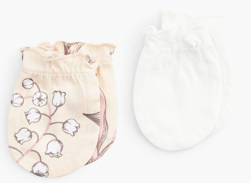 - В наборе 2 комбинезона-слипа, 2 чепчика на завязках, боди с боковой застежкой, ползунки, пинетки, 2 пары рукавичек