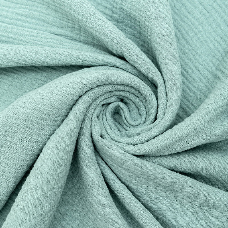Муслин – это двухслойная хлопчатобумажная ткань, необычайно мягкая и хорошо пропускающая воздух, поэтому пелёнки могут использоваться уже с первых дней жизни в качестве одеяльца, подкладки для пеленания, простыни или полотенца.