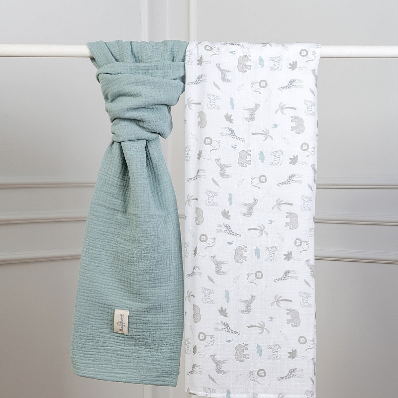 Набор пеленок Lappetti Африка из муслина 2 шт. ЧЗ НП03/3 бирюза