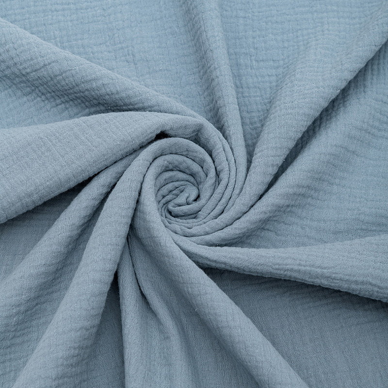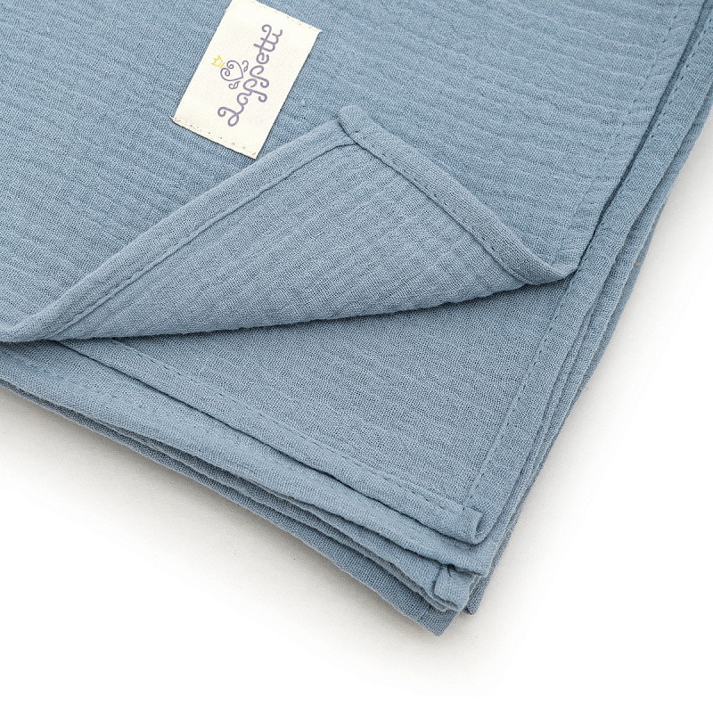 Муслин – это двухслойная хлопчатобумажная ткань, необычайно мягкая и хорошо пропускающая воздух, поэтому пелёнки могут использоваться уже с первых дней жизни в качестве одеяльца, подкладки для пеленания, простыни или полотенца.