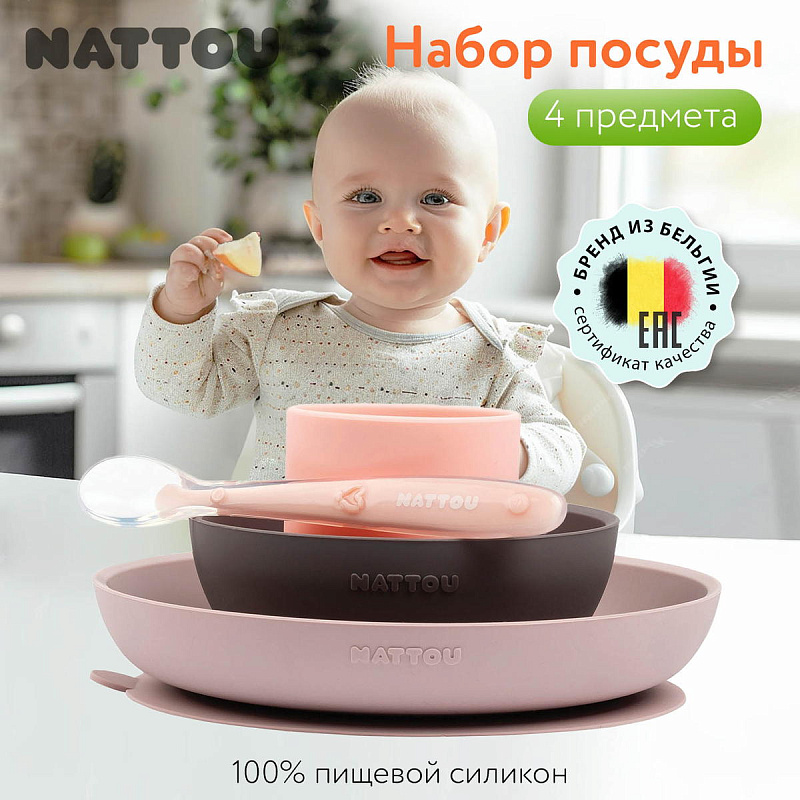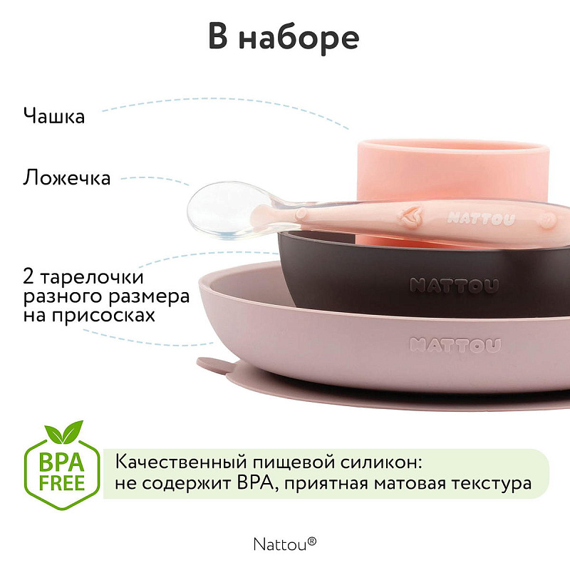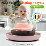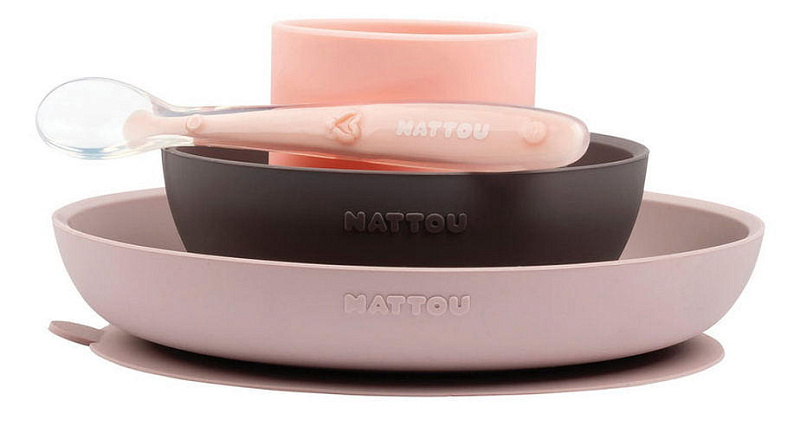 Набор посуды Nattou: 2 тарелки, чашка, ложка pink/eggplant 877763
