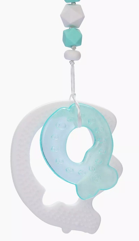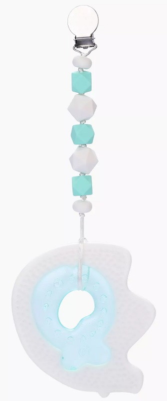 - прорезыватель в форме рыбки удобно держать в маленьких руках, а держатель убережет от падений