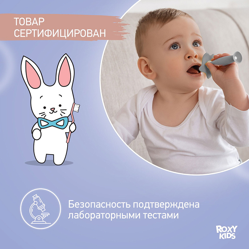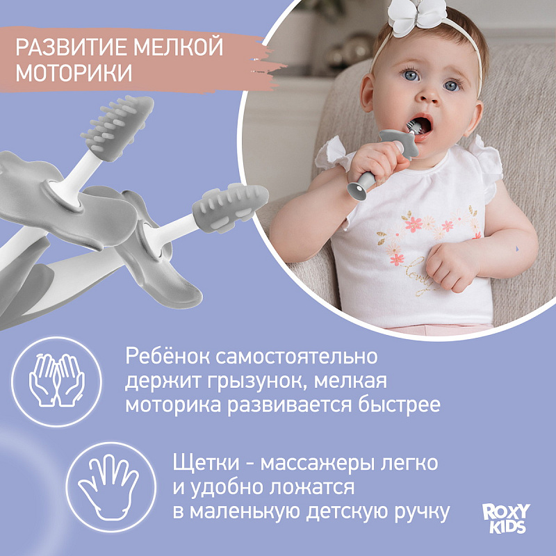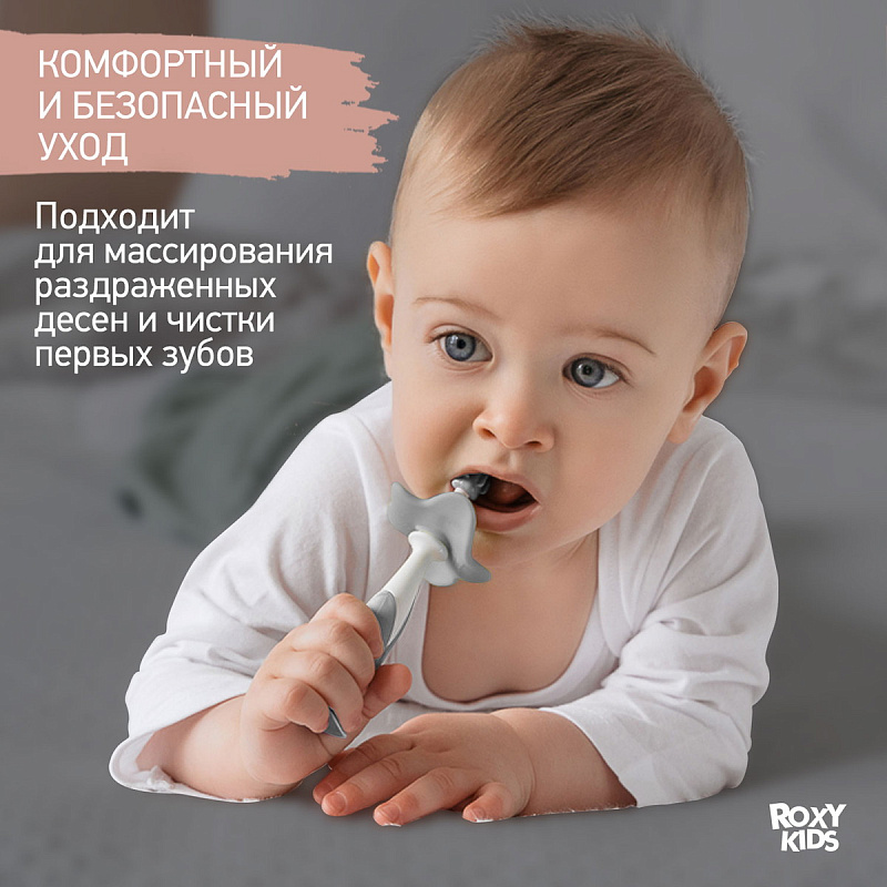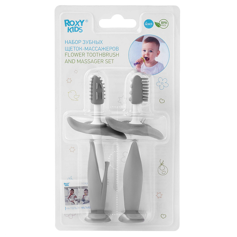 Набор Roxy-Kids зубная щетка и массажер RTB-007 серый