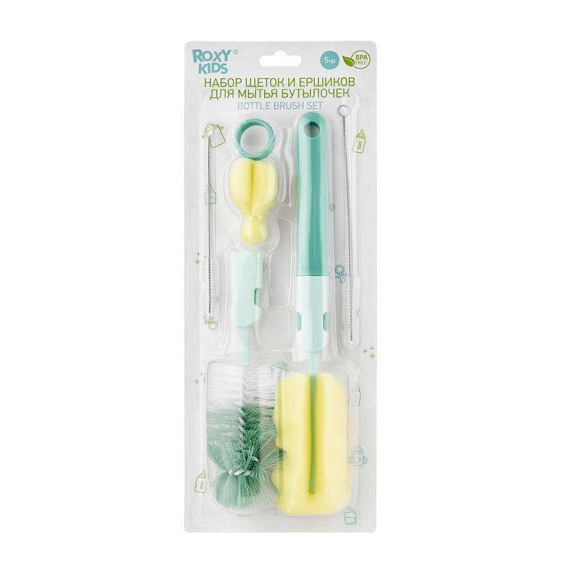 Набор щеток Roxy-Kids для бутылочек 5 шт RFD-007 голубой/зеленый