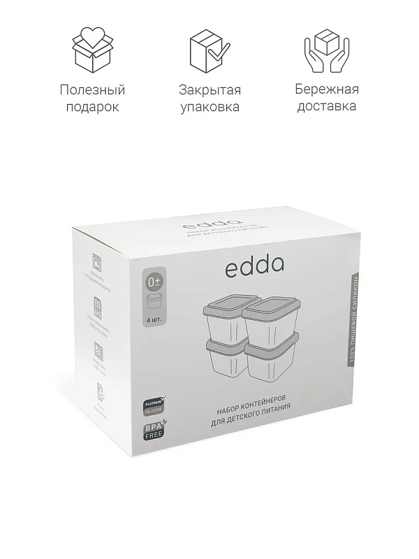 С контейнерами edda удобно накормить малыша полезной едой в любое время и в любом месте. Они сохранят свежесть и полезные свойства продуктов надолго, будь то каши, пюре, ягоды, супы, любые снеки или сухая смесь для питания. Контейнеры легко мыть и использовать многократно. Они выполнены в лаконичном дизайне и нежных, пастельных тонах, гармонично дополняя интерьер современной кухни.